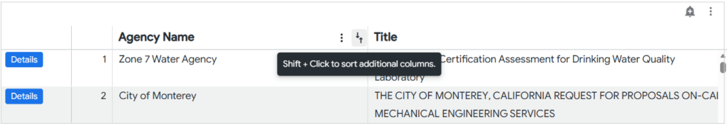 Figure 3: Sorting columns
