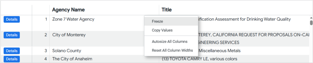 - Freeze columns