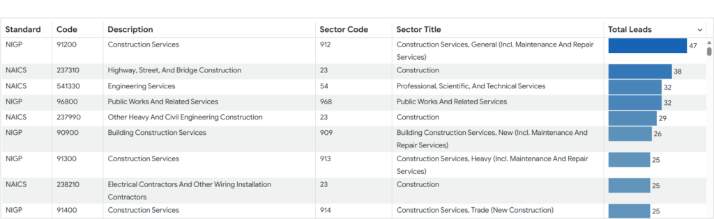 This chart helps users quickly assess how opportunities are distributed across procurement formats.