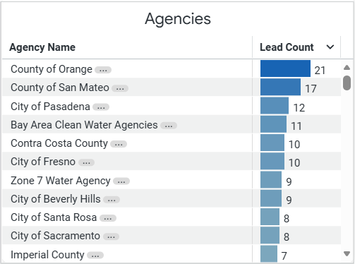 This view highlights which agencies have the highest number of matching leads in the filtered lead set.